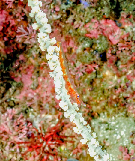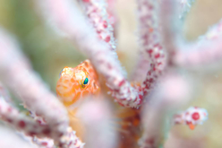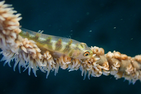 「白きサンゴに佇むガラスハゼ 」